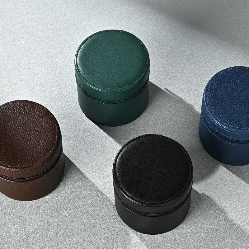 Cette boite à montre de voyage en cuir PU est conçue pour protéger et transporter votre montre avec élégance et sécurité. Son format compact et rond en fait un étui idéal pour les déplacements, tout en offrant une présentation soignée pour un usage quotidien ou un cadeau raffiné. L’intérieur en microfibre et velours doux maintient la montre parfaitement en place et la protège des rayures et chocs légers. Disponible en noir, vert, bleu et marron, elle s’adapte à tous les styles.