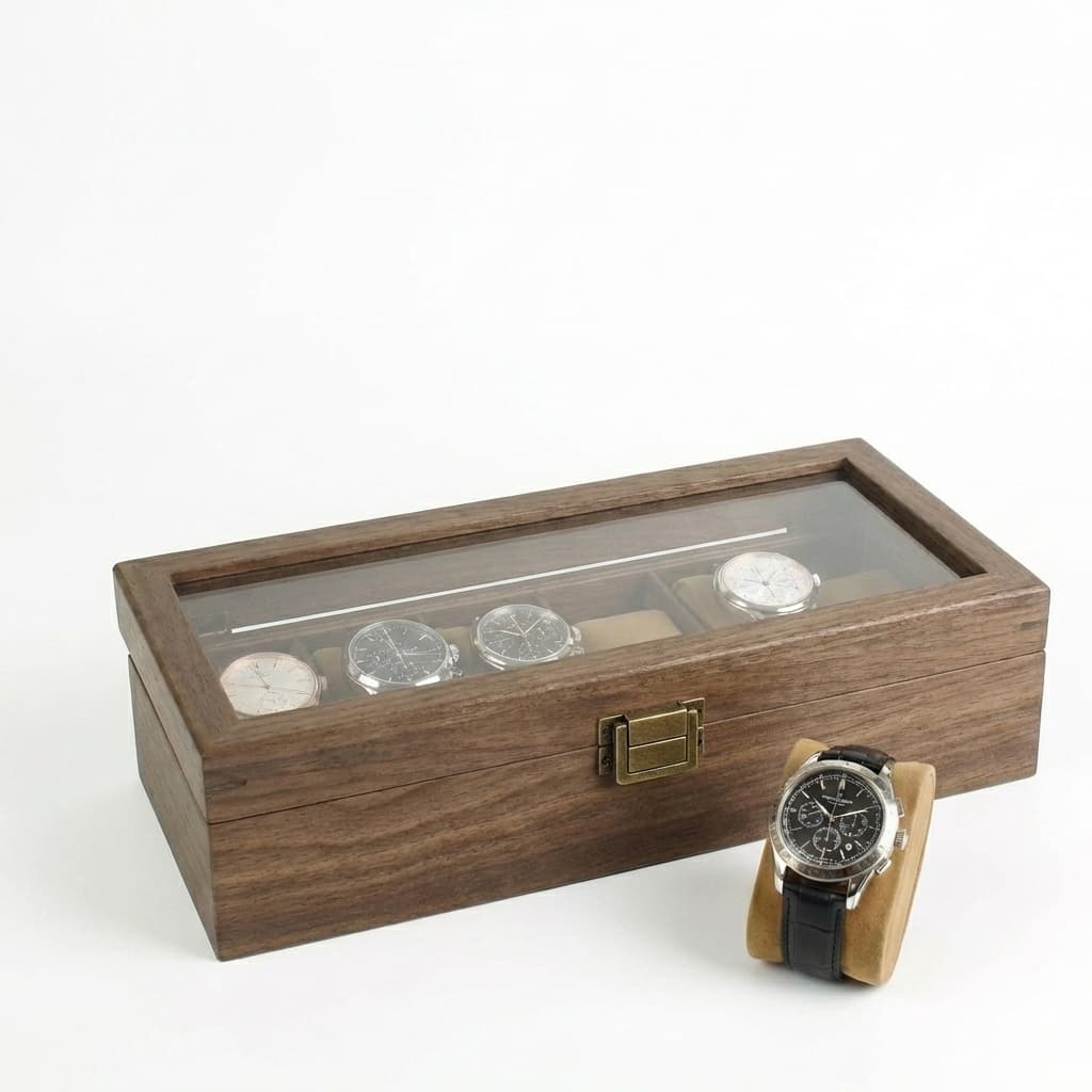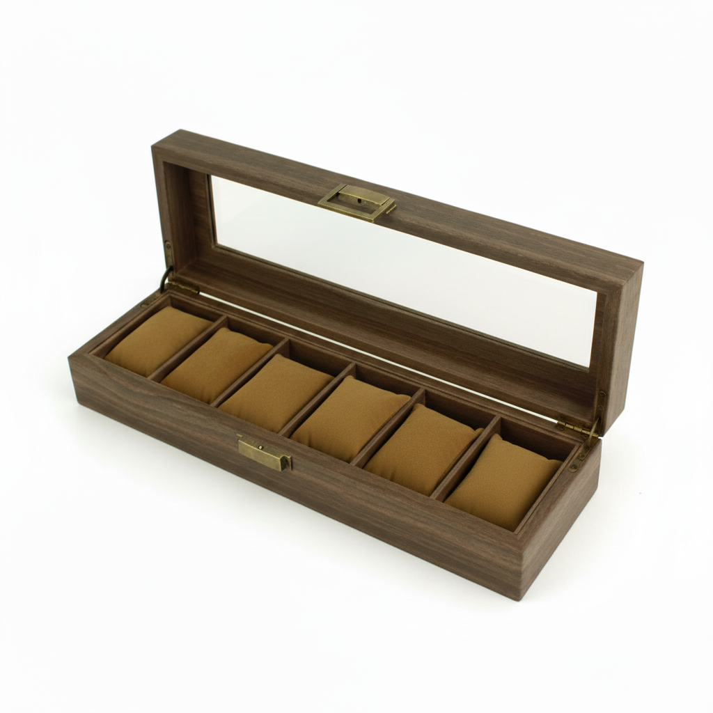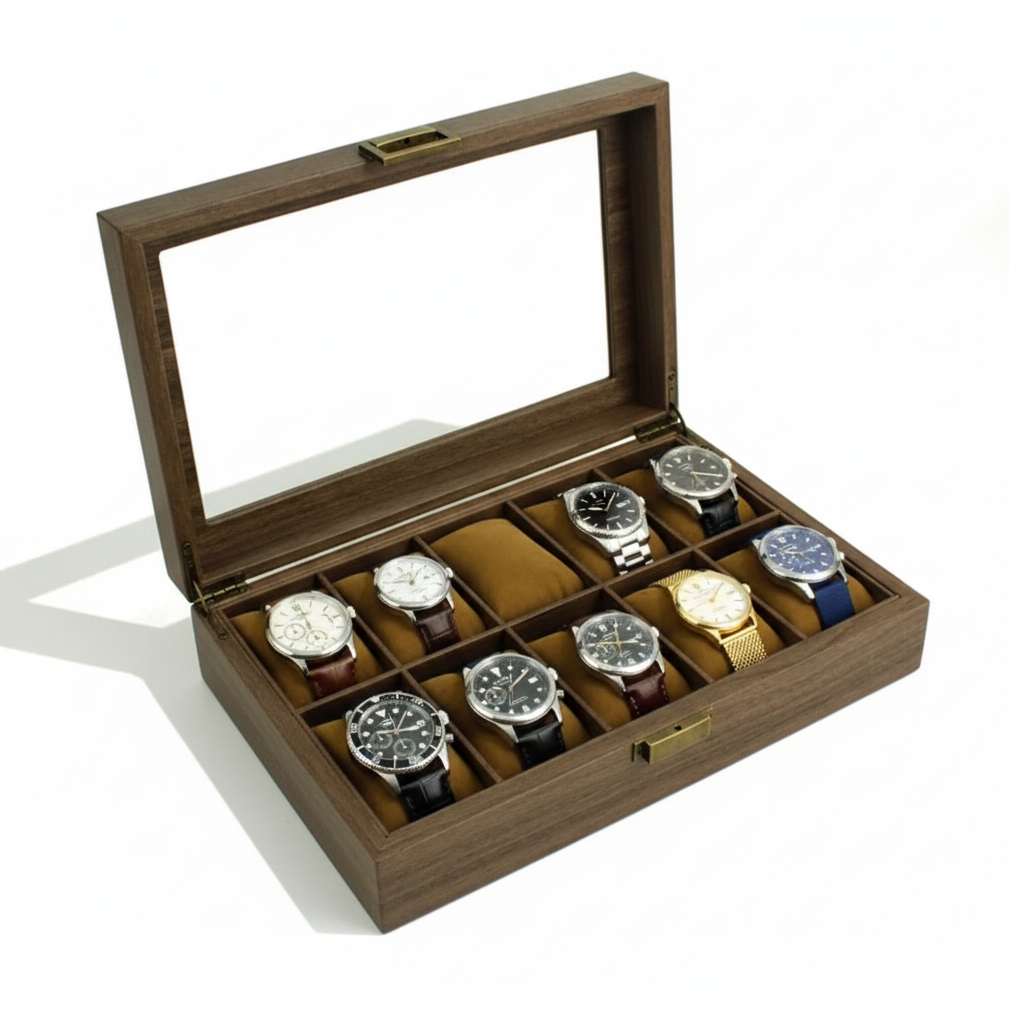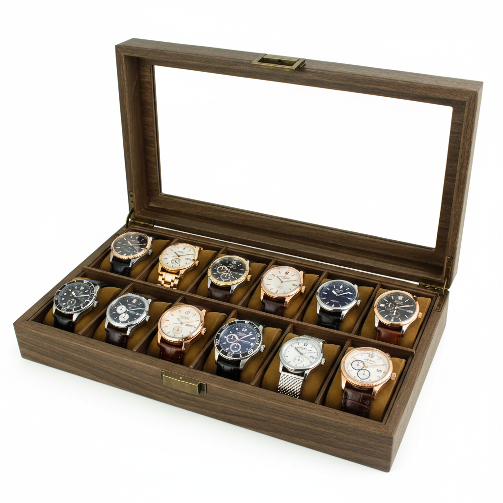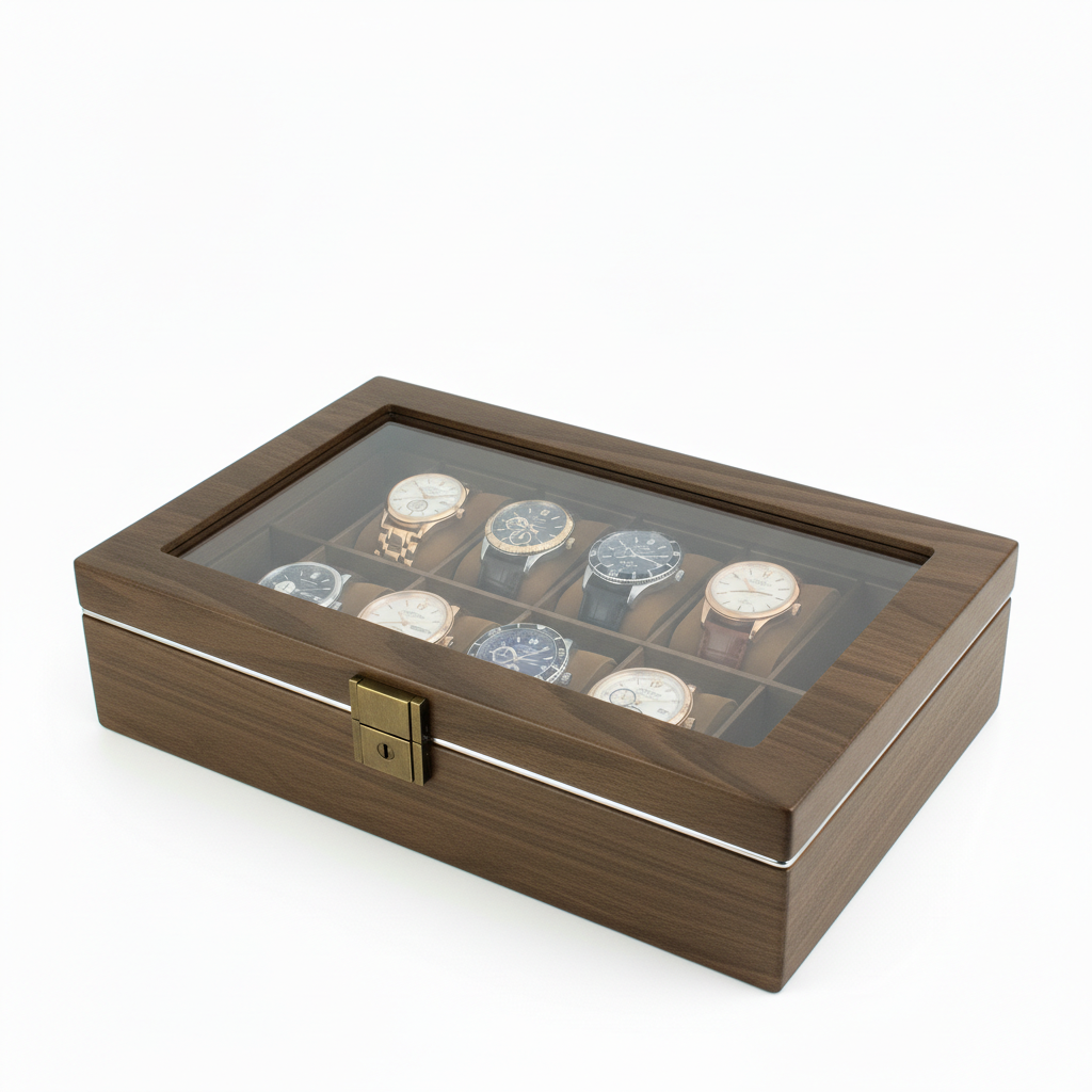 Que Contient Mon Colis : Une boite à montre en PU effet bois, capacité selon la variante choisie, prête à organiser et protéger votre collection.