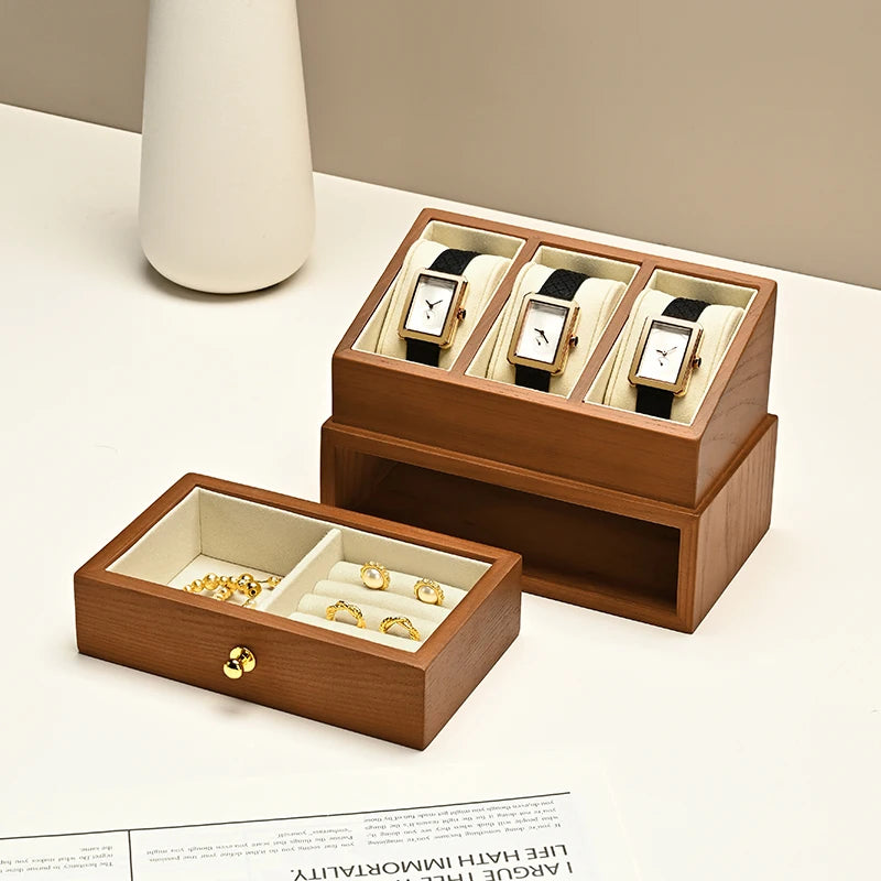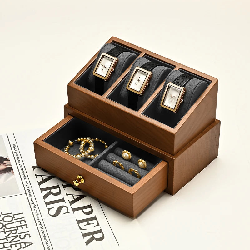 Boite À Montre En Bois – Coffret 2 Niveaux Avec Vitrine