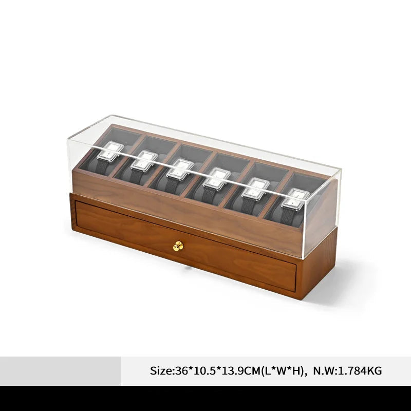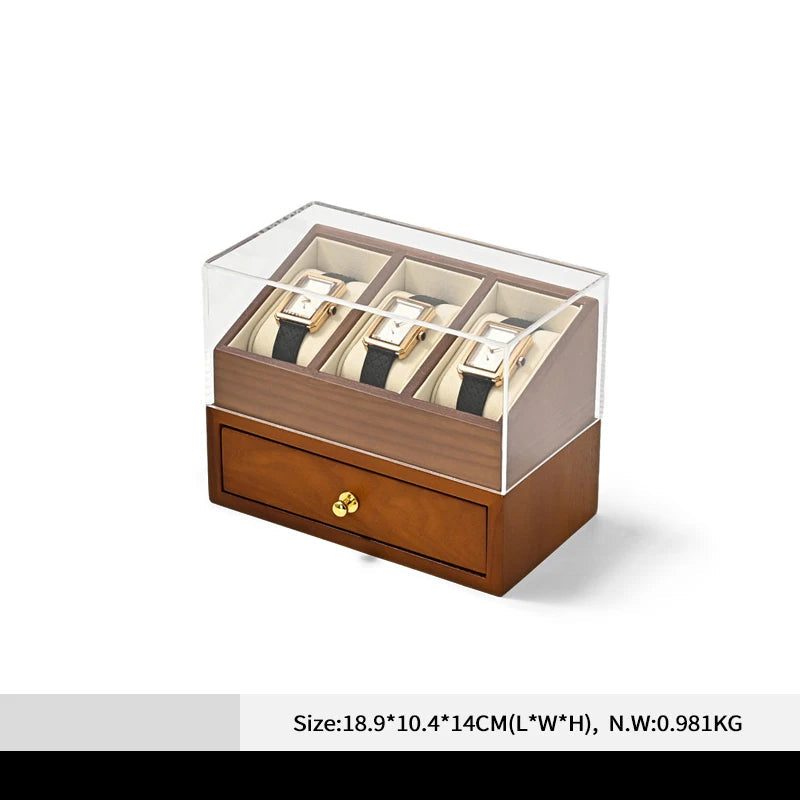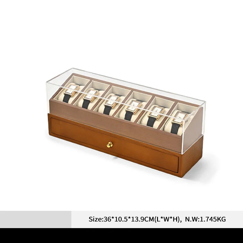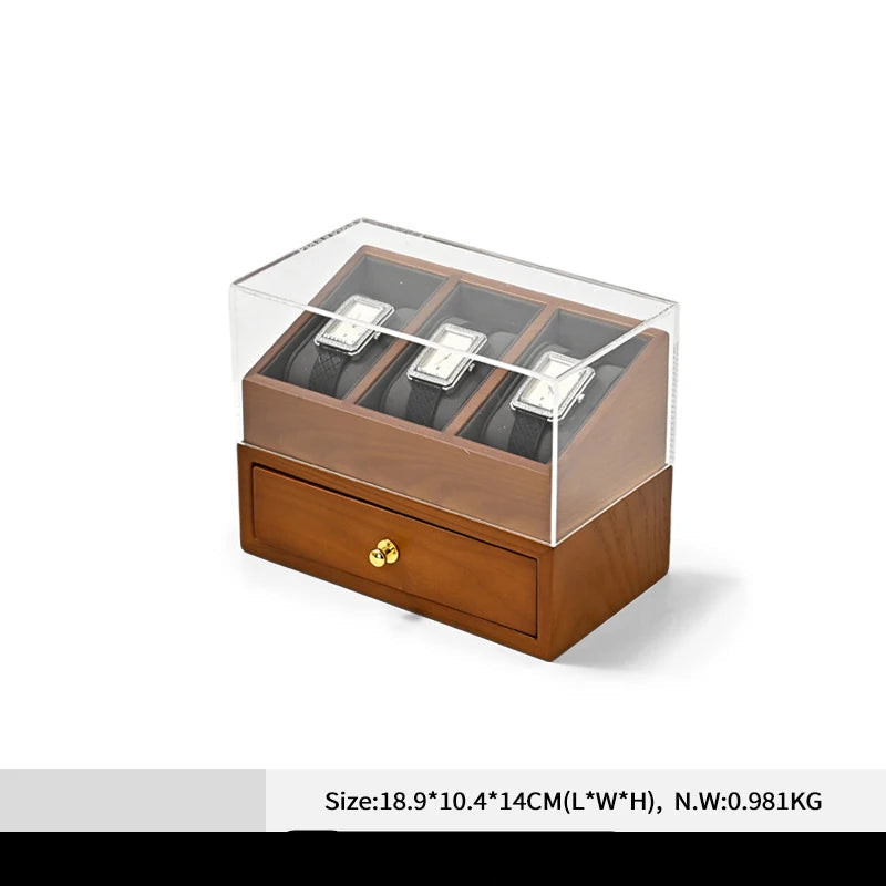 Cette boite à montre en bois à double niveau est pensée pour offrir un rangement élégant, organisé et protecteur de vos montres et bijoux. Son couvercle transparent anti‑poussière met en valeur votre collection tout en la protégeant, tandis que le tiroir inférieur permet de ranger bracelets, bagues ou accessoires. Adaptée à un usage à domicile comme à l’exposition, elle combine praticité et esthétique.