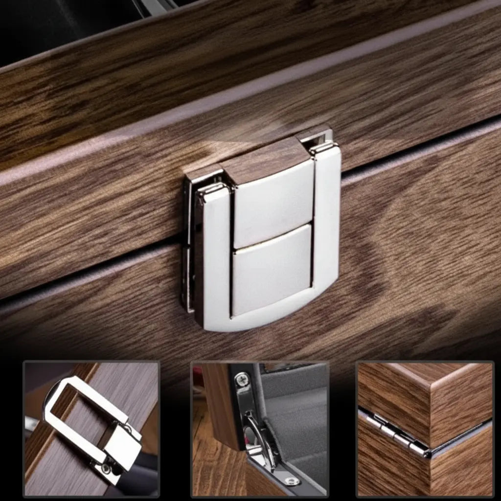 Cette boite à montre en bois de noyer est conçue pour offrir un rangement élégant, moderne et polyvalent à vos montres et bijoux. Pensée pour un usage sur bureau, elle permet d’organiser et de mettre en valeur montres mécaniques, bracelets et accessoires avec sobriété. Disponible avec ou sans vitrine, elle s’adapte aussi bien à une exposition visuelle qu’à un rangement plus discret, tout en apportant une touche design et naturelle à votre intérieur.