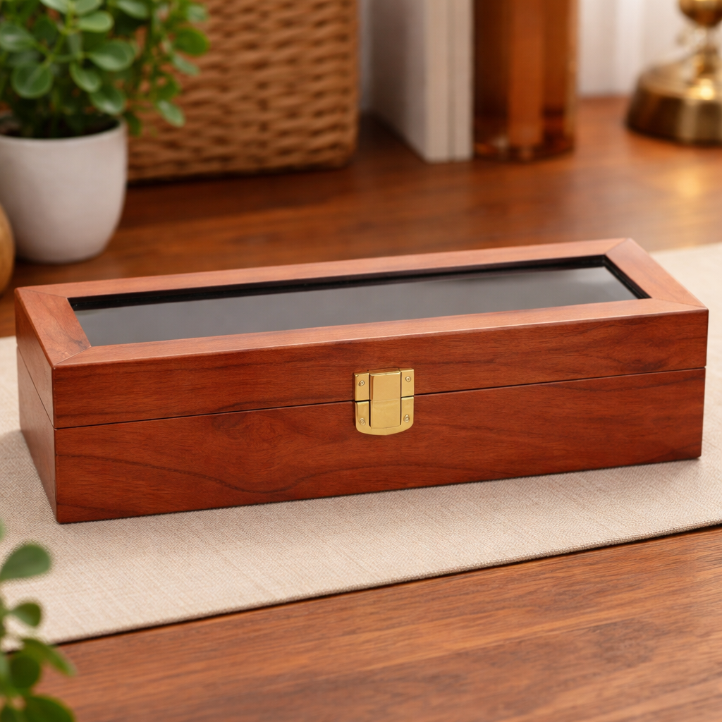 Boite À Montre En Bois Vintage – Présentation Avec Couvercle Verre