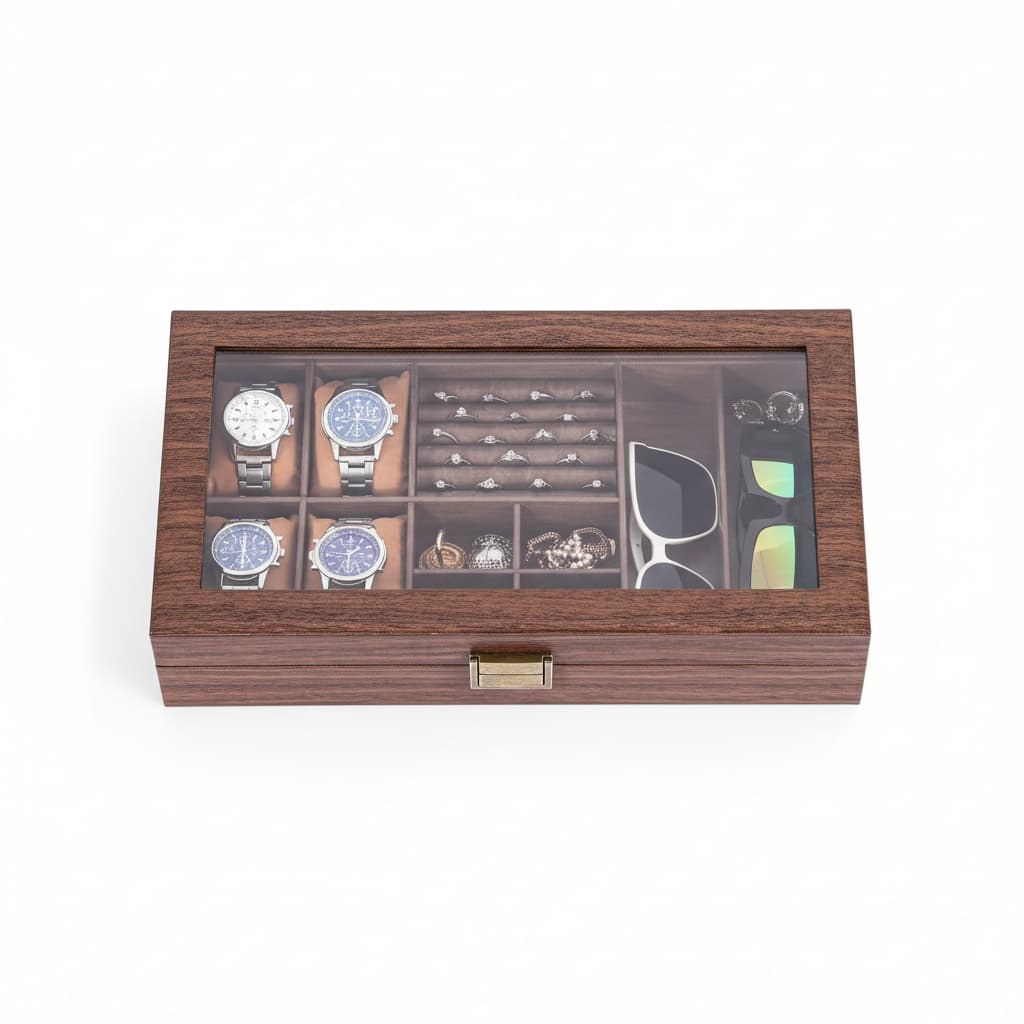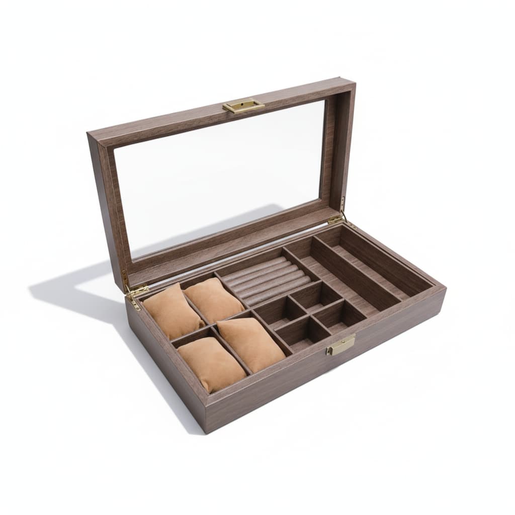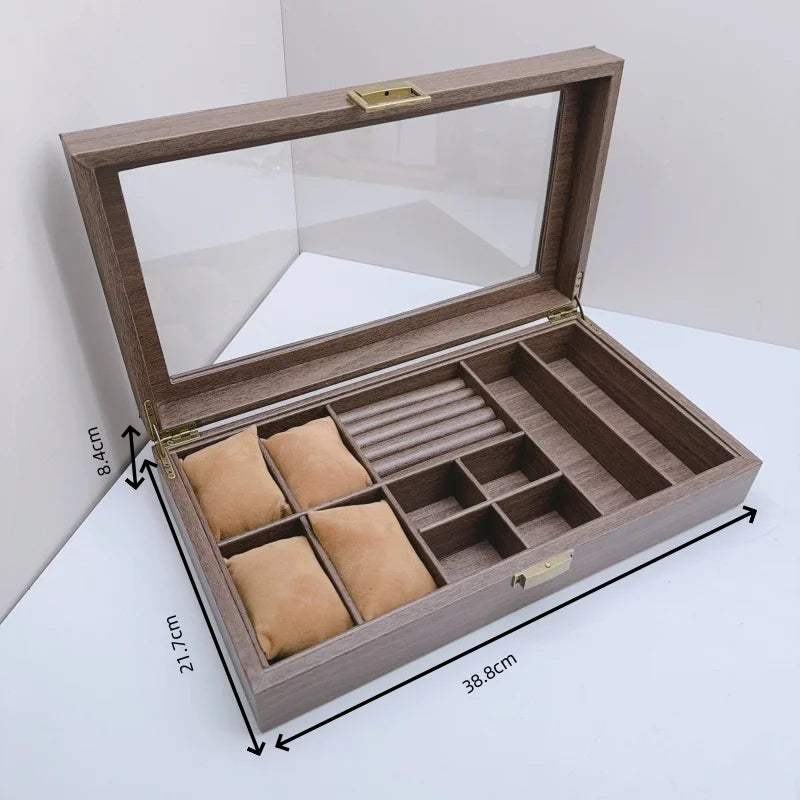 Cette boite à montre en cuir PU est conçue pour offrir un rangement spacieux, organisé et polyvalent à vos montres et bijoux. Son format grande capacité permet d’accueillir montres, bagues, boucles d’oreilles et autres accessoires dans des compartiments dédiés. Son design simple et élégant s’intègre facilement dans un dressing ou une chambre, tout en assurant une protection efficace contre la poussière et les chocs légers.