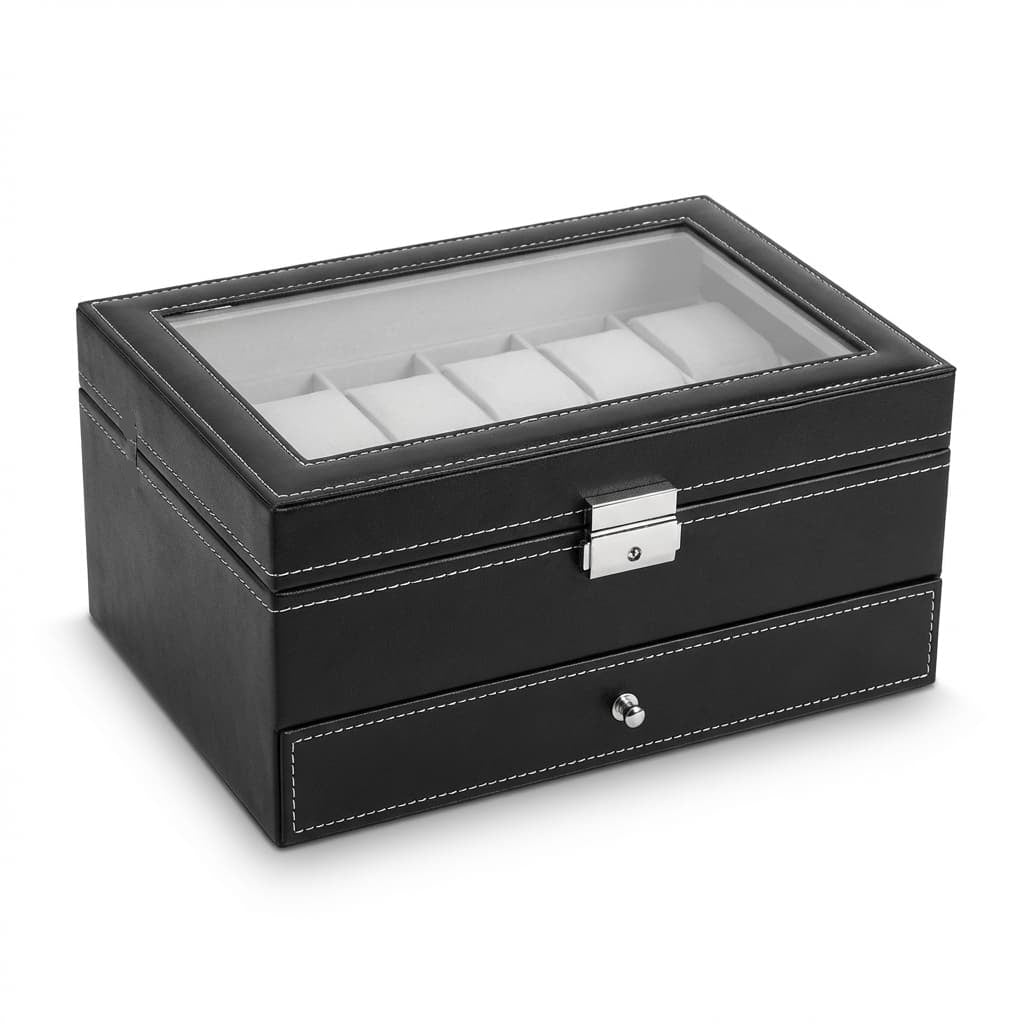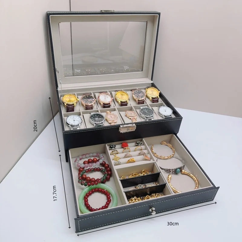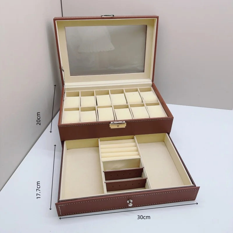 Boite À Montre Verrouillable – Coffret 2 Niveaux Avec Vitrine