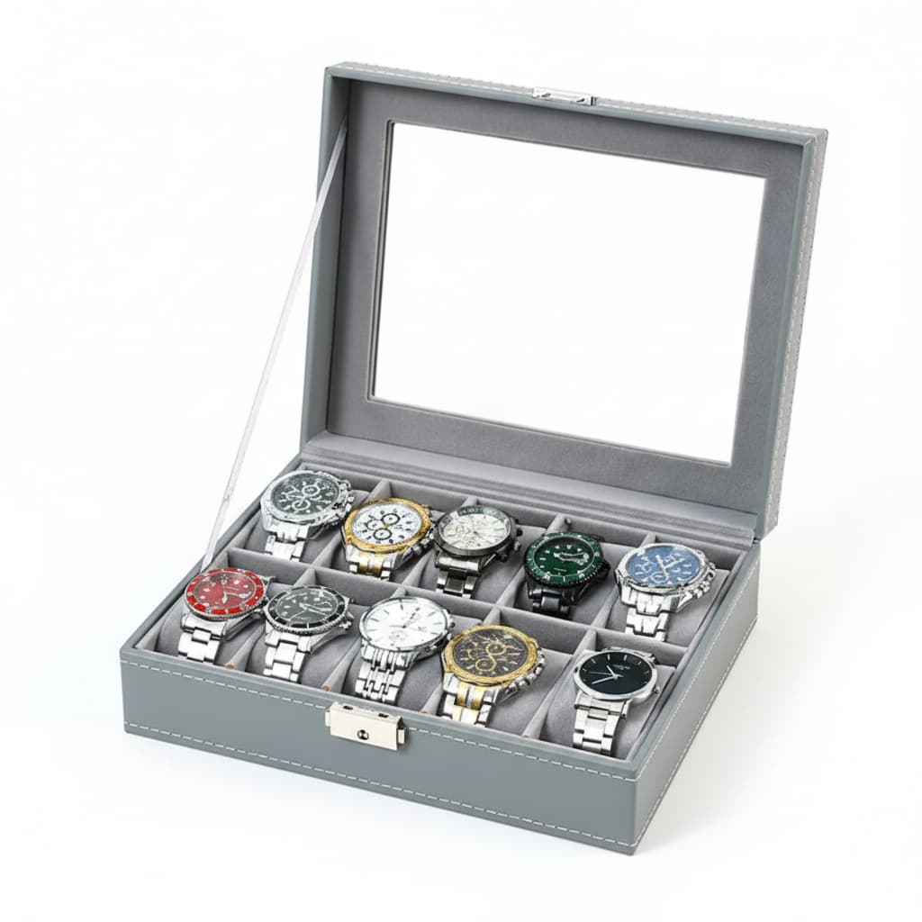 Boite À Montres En Cuir Gris – Coffret 6, 10 ou 12 Emplacements