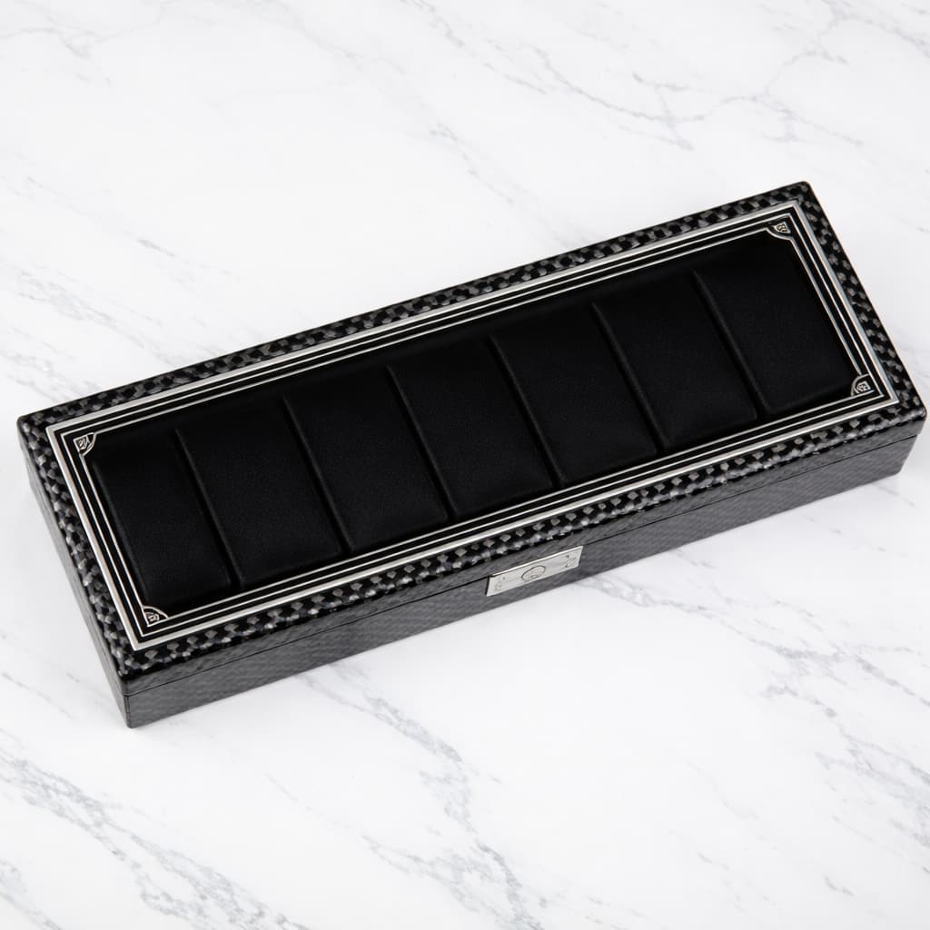 Les matériaux, les compartiments et les coussins maintiennent la montre en place, la protègent des chocs, de la poussière et des frottements inutiles.
