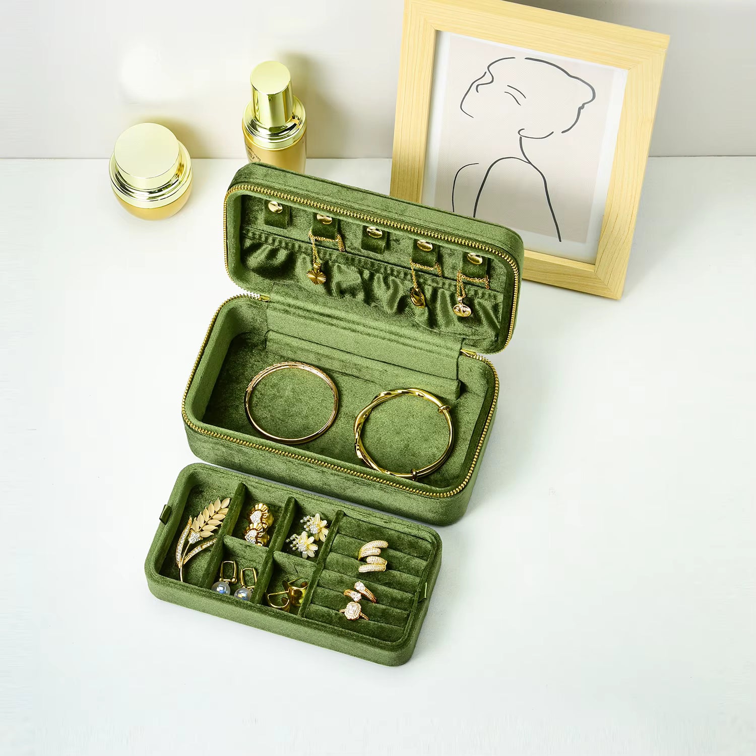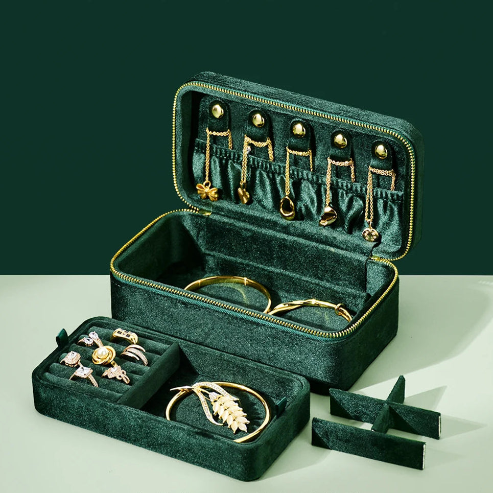Boîte en Velours Double Étage pour Bagues et Colliers – Femme