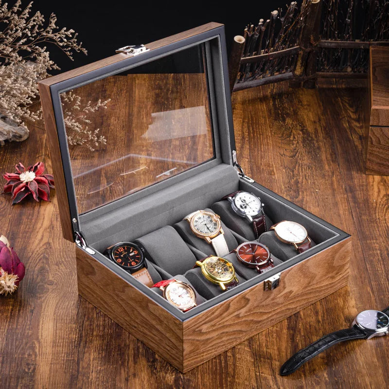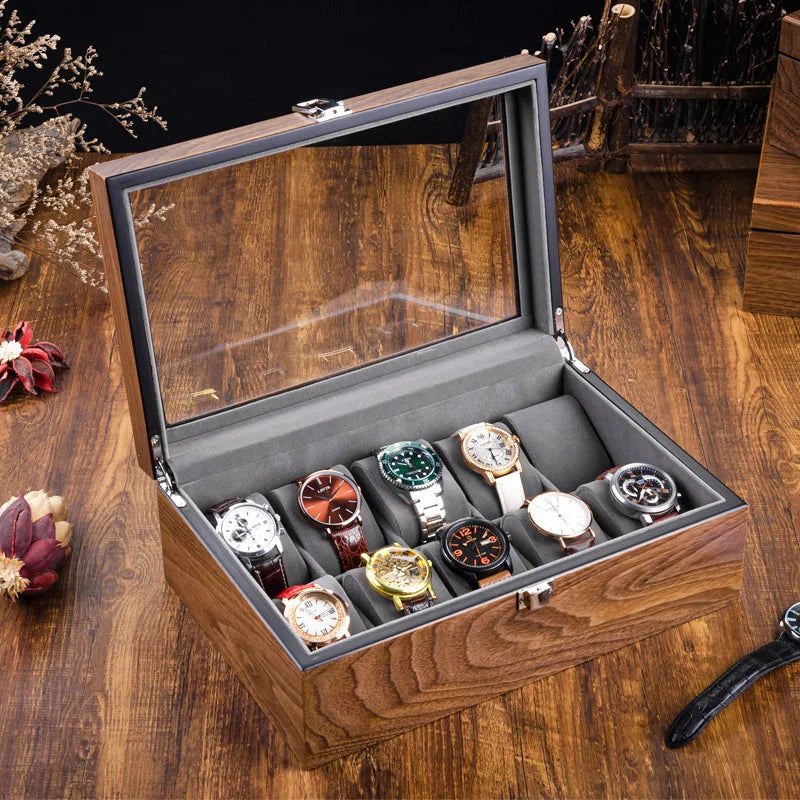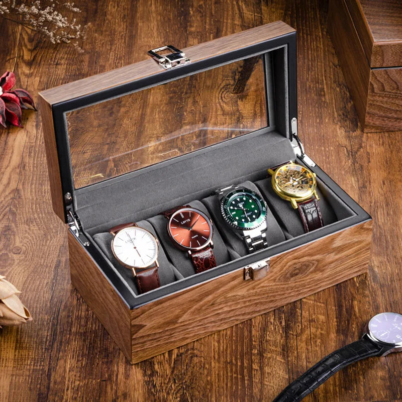 - Boite à montre en bois de noyer avec vitrine transparente