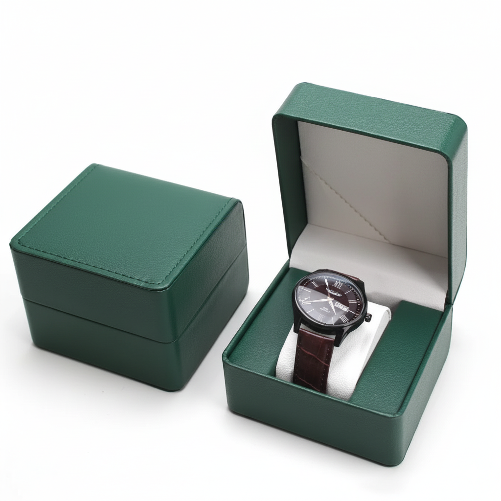 Habillée d’un revêtement imitation cuir (PU) agréable au toucher, elle offre une bonne résistance à l’usure tout en restant facile à nettoyer. À l’intérieur, le coussin de maintien protège efficacement la montre contre les rayures, les frottements et la poussière.