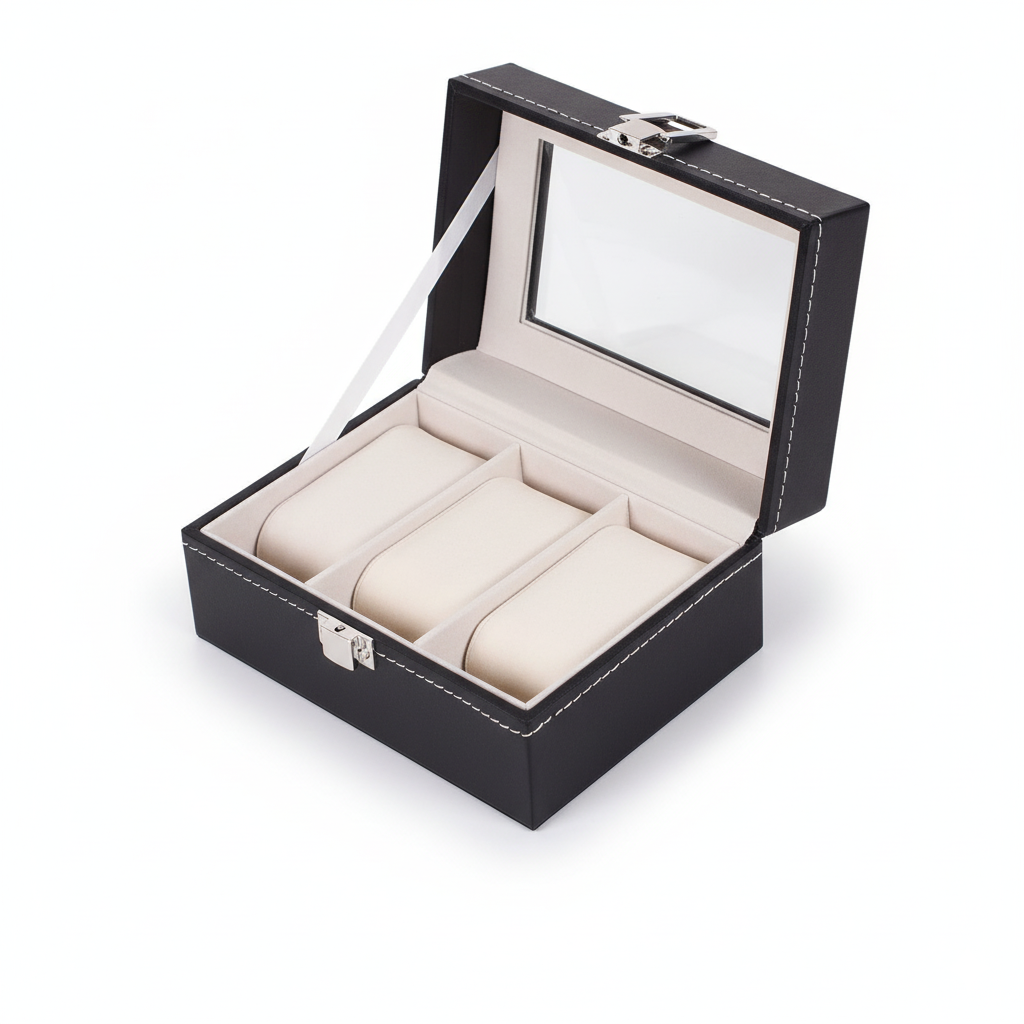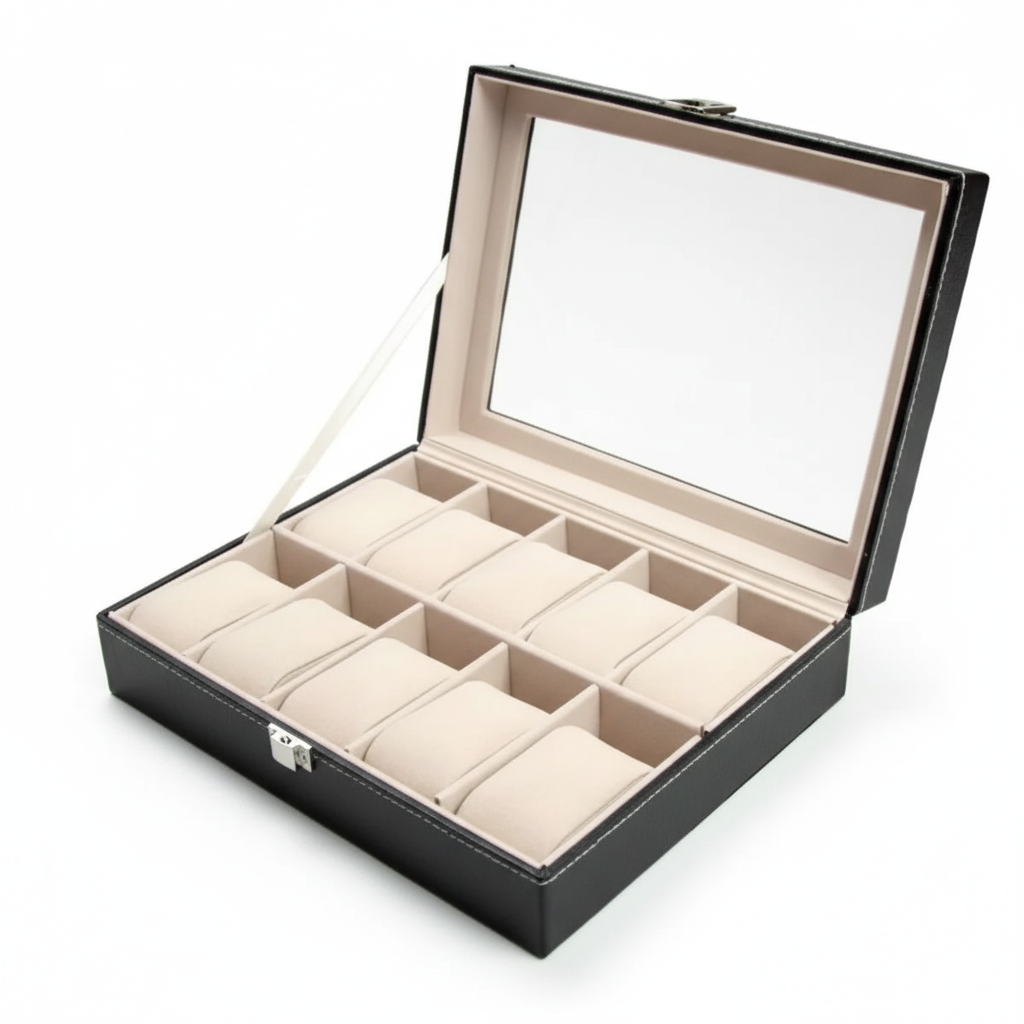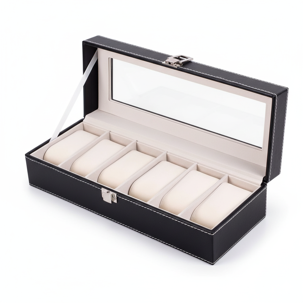 Conçue en cuir synthétique (PU) avec une finition soignée, elle offre une excellente résistance à l’usage quotidien. L’intérieur en velours protège efficacement les boîtiers et bracelets contre les rayures, les frottements et la poussière. Chaque montre est maintenue en place grâce à des coussins adaptés.