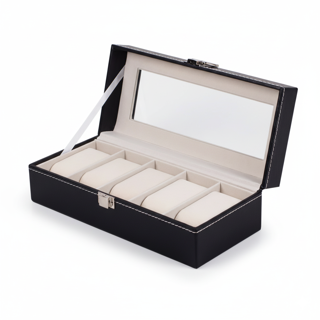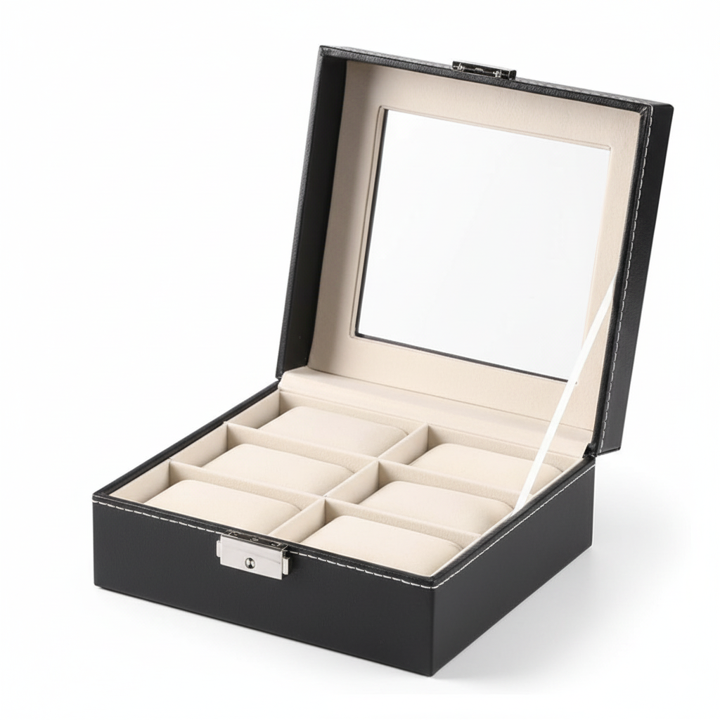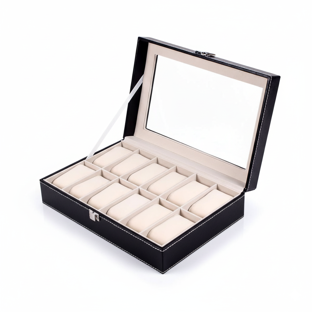 Conçue en cuir synthétique (PU) avec une finition soignée, elle offre une excellente résistance à l’usage quotidien. L’intérieur en velours protège efficacement les boîtiers et bracelets contre les rayures, les frottements et la poussière. Chaque montre est maintenue en place grâce à des coussins adaptés.