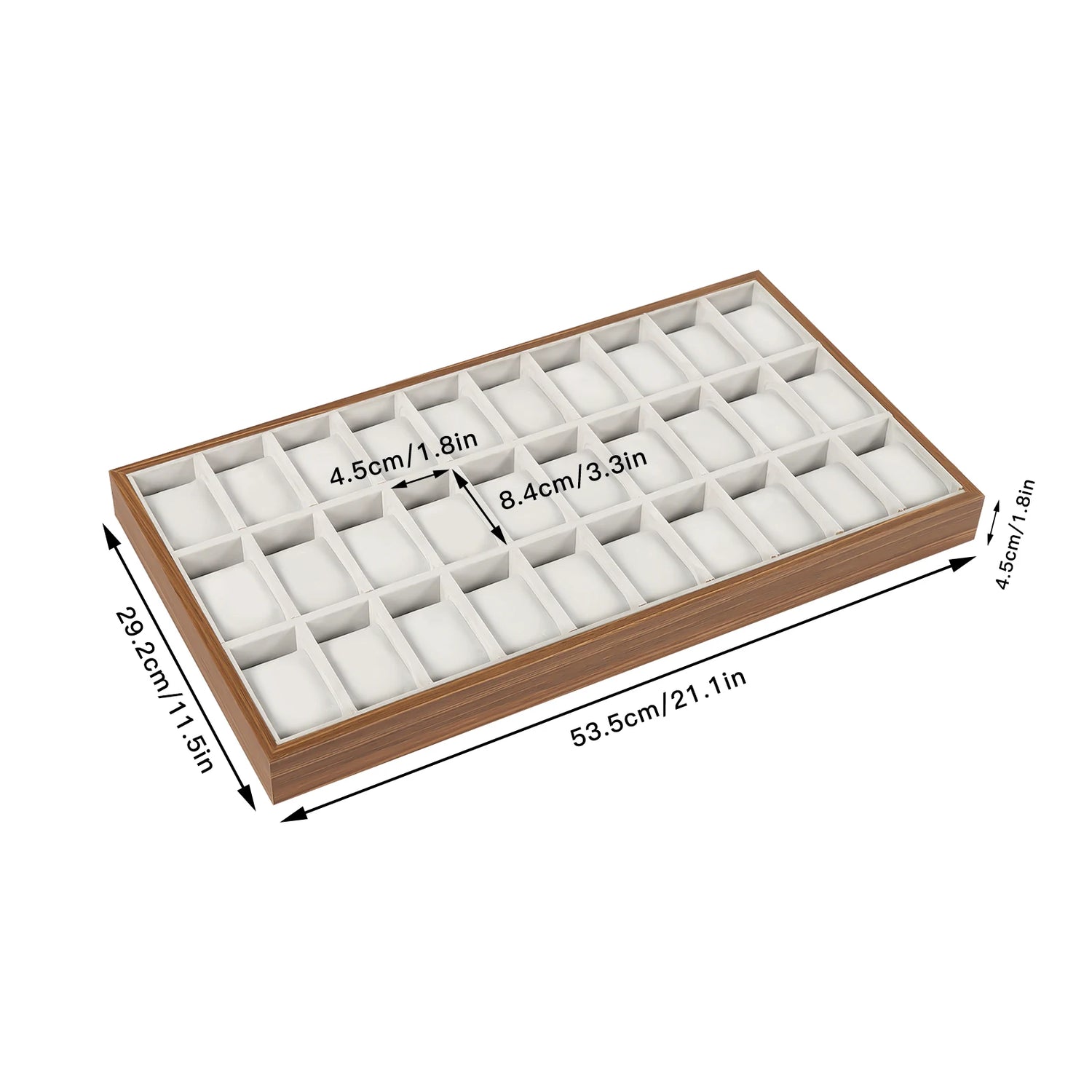 - Dimensions de chaque compartiment : 4,5 × 8,4 cm