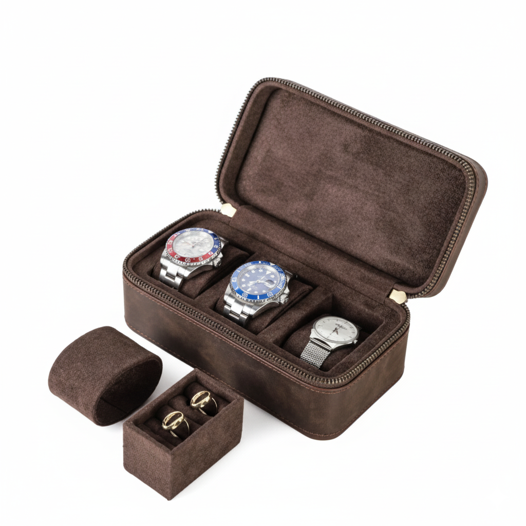 - Capacité : Jusqu’à 3 montres ou accessoires (bagues, boutons de manchette, boucles d’oreilles)
