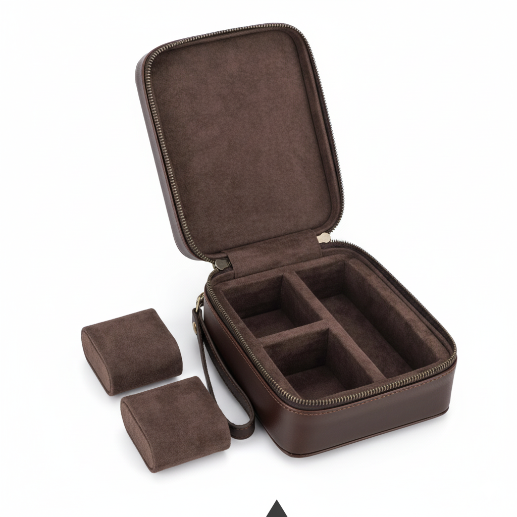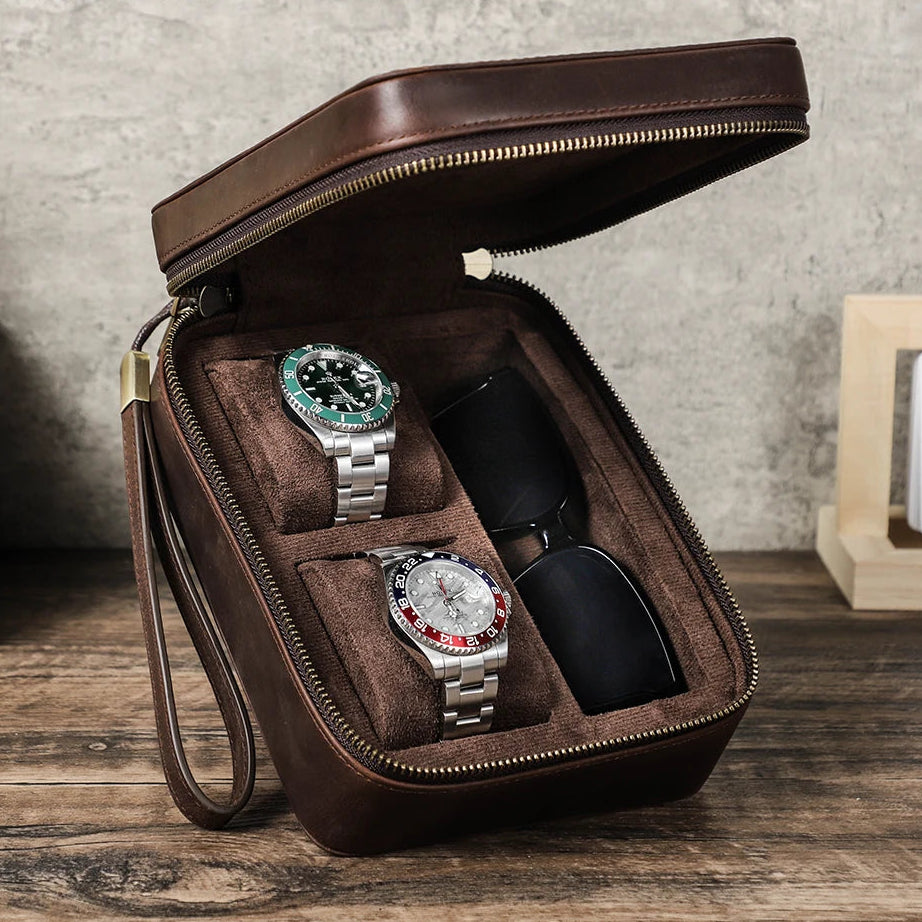 Un Étui De Voyage En Cuir Pour Montres, Lunettes Et Accessoires.