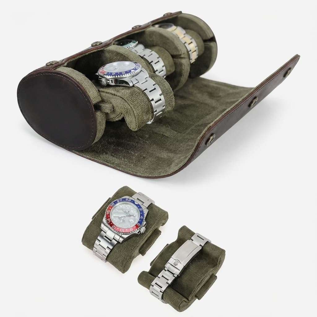 Chaque compartiment individuel est conçu pour maintenir la montre en place grâce à des coussins de maintien souples, protégeant efficacement le boîtier et le bracelet contre les chocs, les frottements et les rayures. Le format rouleau permet un gain de place optimal tout en assurant une excellente protection lors du transport.