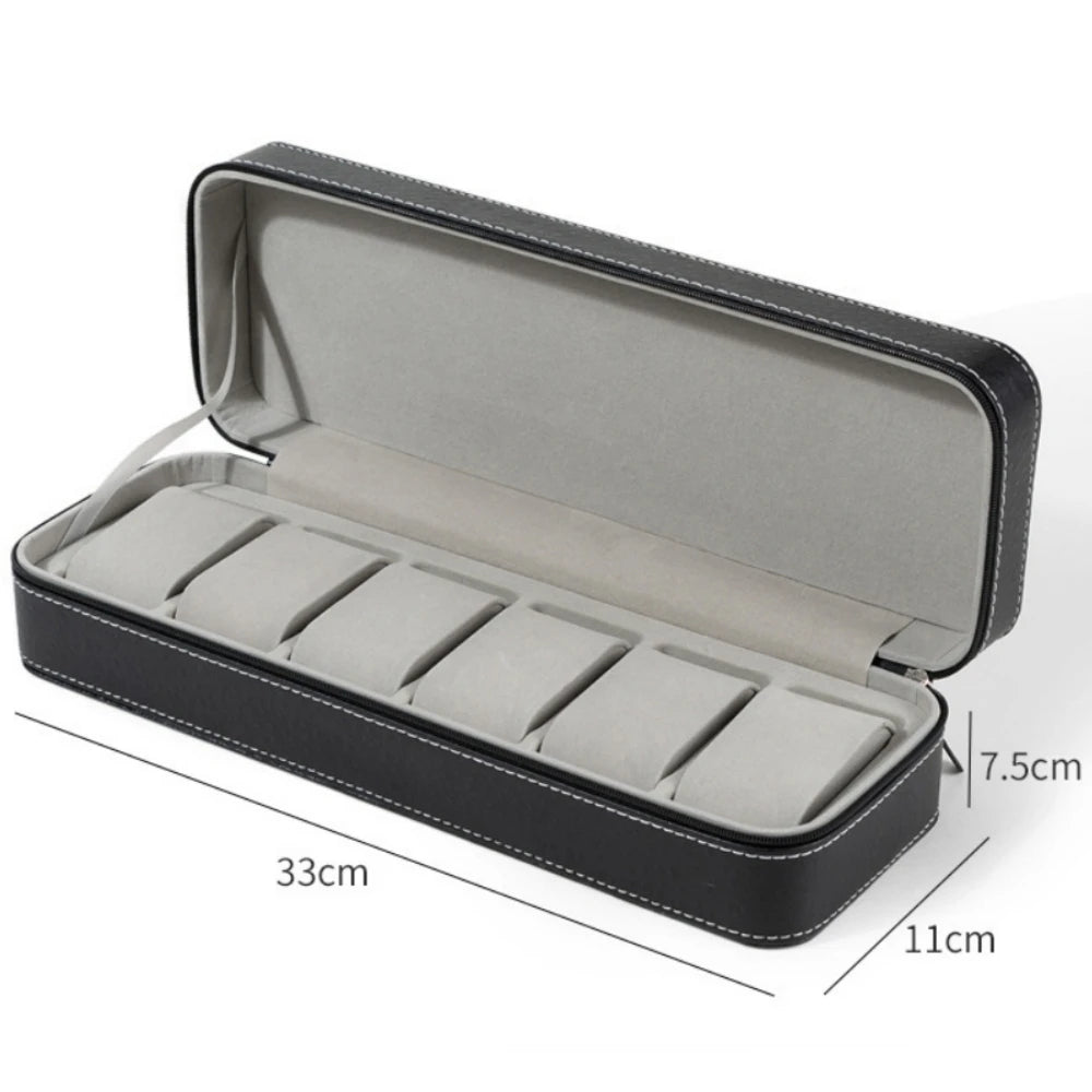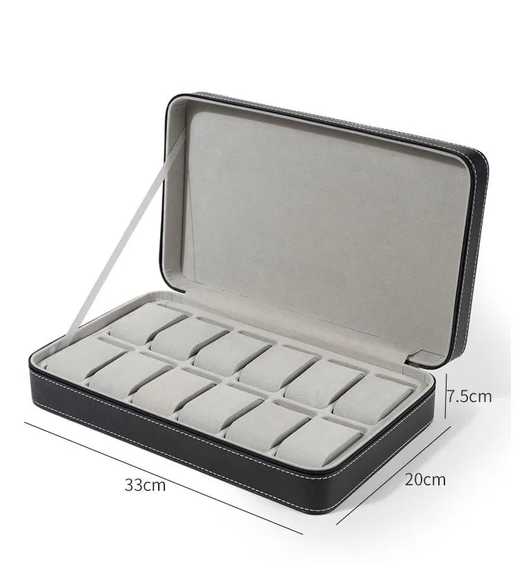 Disponible en 6, 10 ou 12 emplacements, il s’adapte à toutes les collections. Polyvalent, il peut également accueillir bijoux et accessoires, ce qui en fait une solution idéale pour le voyage, le rangement quotidien ou comme cadeau élégant.
