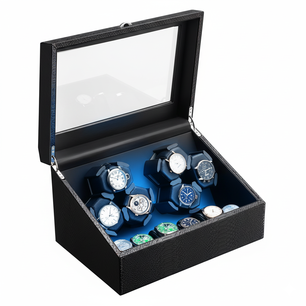 Remontoir Automatique En Similicuir Avec LED Bleue