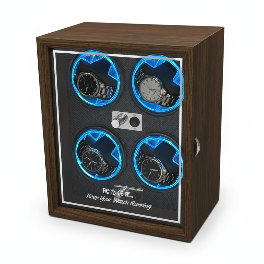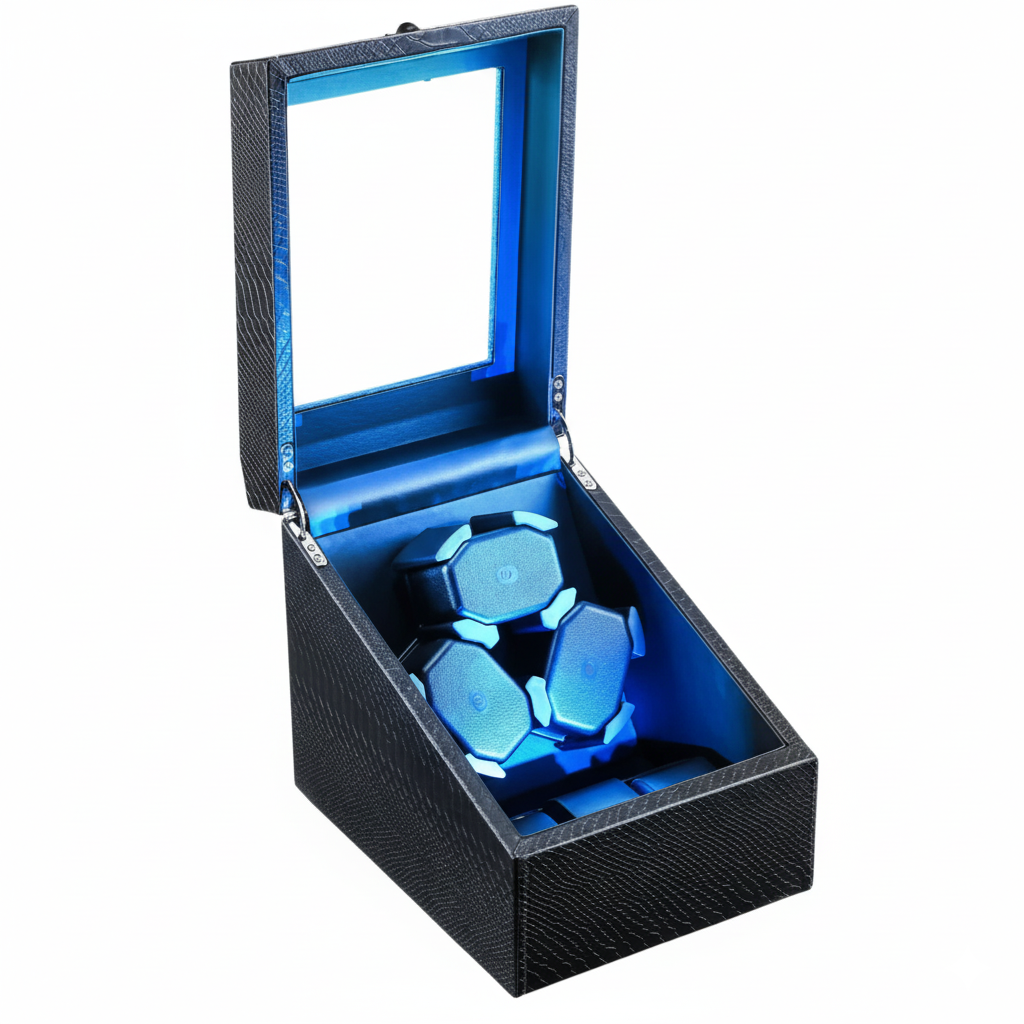 Ce remontoir automatique pour montres mécaniques a été conçu pour répondre aux besoins des collectionneurs et des professionnels de l’horlogerie souhaitant entretenir et exposer plusieurs montres automatiques simultanément. Son design structuré en similicuir avec éclairage LED bleu en fait un excellent choix pour une vitrine, un bureau ou une boutique.