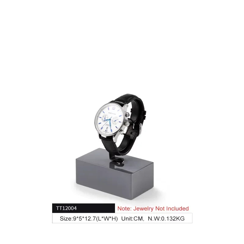 Ce support présentoir à montre en métal est conçu pour mettre en valeur vos montres avec une présentation élégante et contemporaine. Son design minimaliste en métal finition gris ou argent apporte une touche de luxe discret, idéale pour une vitrine, un comptoir, un bureau ou même comme accessoire de photographie. Stable et compact, il permet d’exposer vos montres tout en les maintenant parfaitement en place.